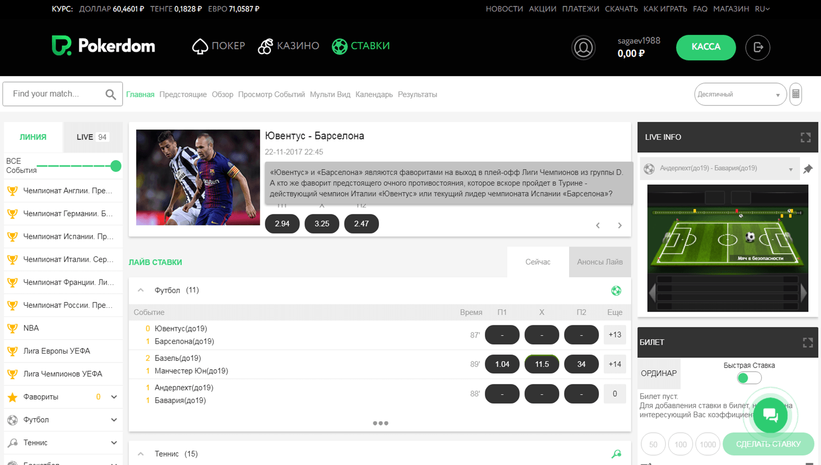 Дальше необходимо перейти в раздел «Ставки», он находится в главном меню ресурса ПокерДом. Игрок перейдет в раздел со спортивными ставками, здесь можно выбрать желаемое событие и заключить пари на определенную сумму.