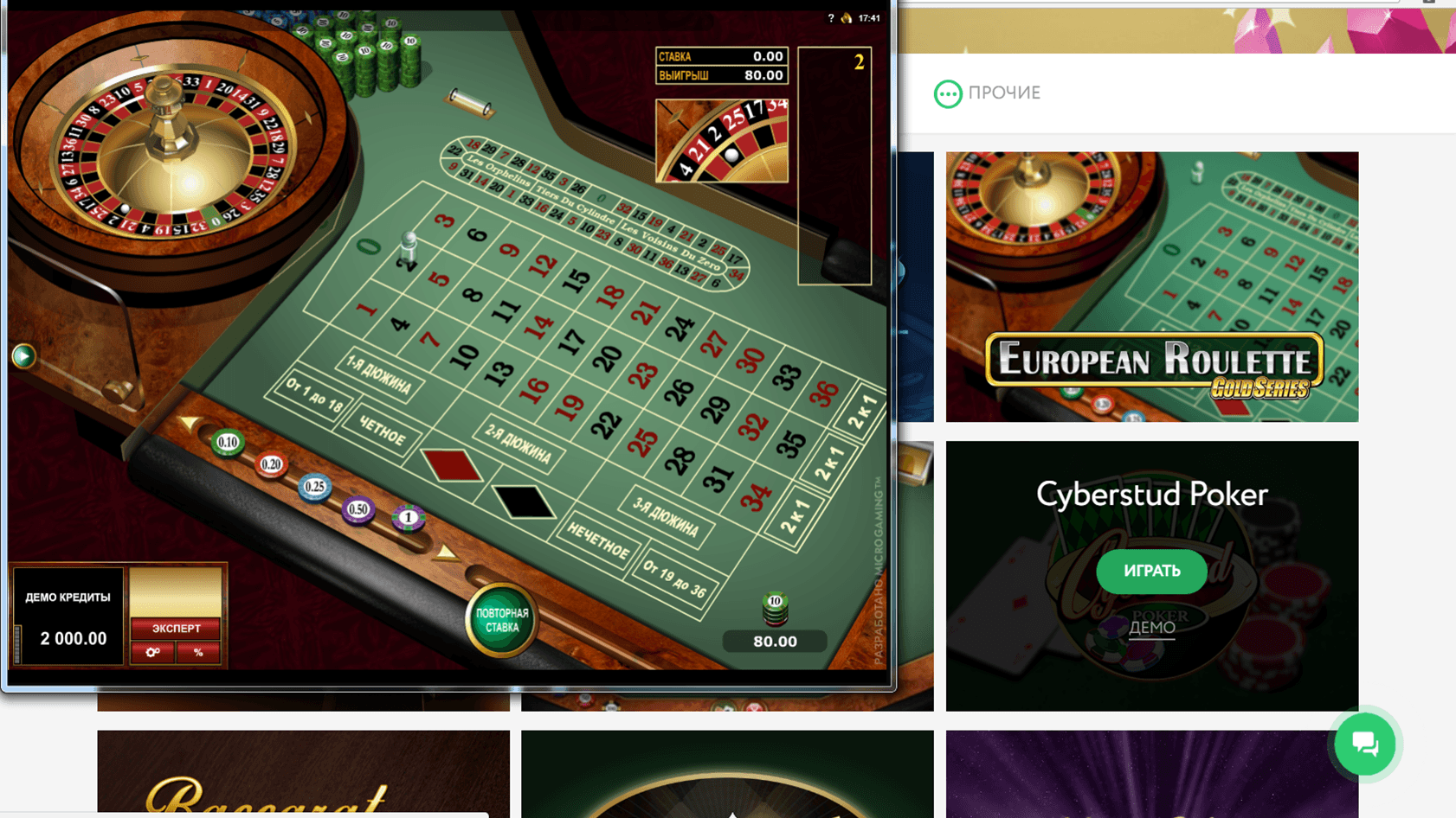 Наверху рядом с логотипом есть раздел «Казино», в него и нужно перейти. Откроется отдельное лобби, в котором будут представлены все доступные развлечения. Ассортимент достаточно большой, есть видеослоты, карточные игры, оригинальные развлечения, видеопокер и, конечно же, рулетка.